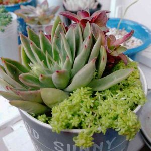 本日2投目! 今日は仕事休み。子供は学校、🐩ワンコもぐっすりお昼寝。今のうちに多肉ターイム💕 プリドニスクリスエックがメインの寄せ植え。 セダムの溢れ具合がナイス😆👍✨