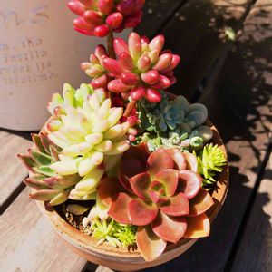 最近、バタバタしててpicが夜ばかり。 今日は、なんとも落ち込んでます。 ガーデニング好きだったから、花の寄せ植えはいつもうまく形になるのですが、多肉の寄せ植えともなると、納得する寄せ植えが一度も出来た事がない💦 なんでだろう?難しい😱難しすぎる😨🌀 私は、向いてないのかな? やればやるほど、歯がポロポロ落ちてなんだかボロボロ…。多肉ちゃんがかわいそうになっちゃった😭