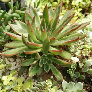 プリドニスクリスエックス エケベリア属 花うらら×クリスマス 先日豪雨に当たってから エッジの色も明るくなって イキイキしてきました 今まで水、足らなかったんかな(^^;; 花うらら交配だと、焦げやすいかもしれないですね 念のため気をつけとこっ‼️