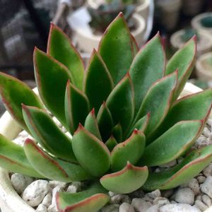赤と緑の多肉。 お迎えした頃より少し葉が細くなりました♪(´ε` )