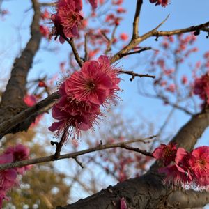 あけぼの山農業公園で観た紅梅 ①〜③八重寒紅(ヤエカンコウ) 濃い紅色の八重咲き、中輪 ④⑤大盃(オオサカヅキ) 早咲き、中大輪、蕊が長い