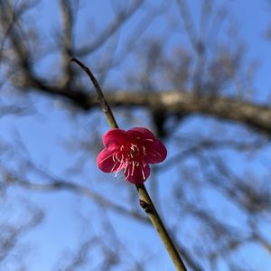 早咲き紅梅は五分咲きくらいかな? 梅木の袂であったかい甘酒飲みたい☕︎