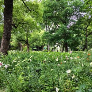 こんばんわ! 日比谷公園のアガパンサスが三種類、咲いていましたが、濃い色の花が、綺麗でした。💙💜🩵 百合の花もまだ、咲いているのがありました。🩷