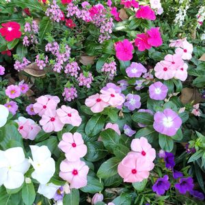 6/24㈫① 🏷カラフルな火曜日 日比谷公園のカラフルな花壇がとても綺麗でした✨ ニチニチソウ、アンゲロニア、スーパーチュニアなどが彩り良く植えられています🤗💞 5枚目の花壇右側の白いモヤモヤはミストです。暑いので冷たいミストが出ていました✨