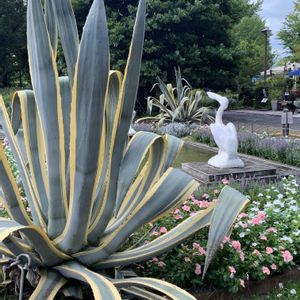 今日のお花 アガベ ❶市川大町観賞植物にて アガベ・滝の白糸 葉の縁に白い糸状(トゲ)のものが等間隔でカールして生えています アオノリュウゼツラン ❷❸ 数十年に一度だけ花を咲かせ、開花後には枯れてしまうそうです。 昨年7月15日、日比谷公園のペリカン広場で開花と知り、朝から陽射しが照りつけるような暑い中行って来ました。 多くの方が高いところに咲く珍しい花に夢中でカメラを向けていました☺️ ペリカンも珍しい花にビックリ❓ ❹新宿御苑にて24/07/15 こちらで一昨年初めて目にしました 今年も昨年咲いたお隣で開花 下の方は、既に項垂れていました