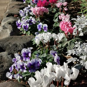 野外ステージ前 パンジー・ビオラ 松ぼっくりは写真撮っていたら 可愛い女の子が全部持っていった 😣💦⤵️