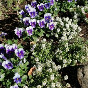ビオラとアリッサム 心字池そばに咲いていました おはようございます🙋 今日もよろしく😉👍🎶