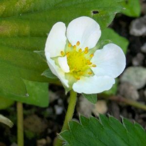 My Garden 🍓いちご 他の子は枯れちゃいましたが、この子だけお花を付けてくれました😸💕 食べられるかな🤤 🏷いちごの日