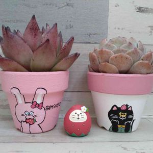 🏷いちごの日 🍓🍓🍓🍓🍓🍓🍓🍓🍓 まだ、ニス待ちのpeanyatsのリメ鉢🍓バージョン ↖ファイヤーバード ↗ジェイドフェイス