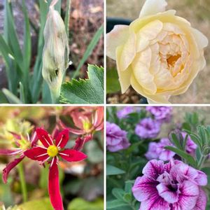 寒くなりました☁️ 今朝の庭🤗 ↖️水仙が咲きそう😅 ↗️まだ蕾ある、ありがたい薔薇 ↙️大文字草は新旧揃って花期長い ↘️ペチュニアまだいける❗️