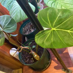 フィロデンドロン グロリオーサム もうすぐ落ちる葉っぱ達。 お迎えした時からある葉っぱで、頑張ってくれた✨ ベルベット系のフィロデンドロンは葉っぱがダメになる過程も、取れた後も手触り、色味、綺麗になる子ばかり✨ 新芽可愛く古葉も綺麗。 そして育てやすさと増やしやすさ。 満点💯✨ フィロデン沼!! ありがとう!葉っぱ達😍😍