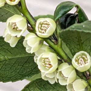 【浜姫榊】《モッコク科》 花言葉 「厳粛」「高潔」「清らかさ」 「神を尊ぶ」 別名 ビシャ ビシャコ ササキ ヒサカキは、古代の日本においても重要な役割を果たしてきました。 特に、神道の儀式においては欠かせない存在でした。 神社の境内や祭壇に必ずと言っていいほど飾られるこの花は、時代を超えてその位置を保っています。
