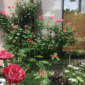 バ〜ラが咲いた〜 その2 夜来香全開かな ピエールドロンサールも咲き揃い始めた。レオナルドはもう少ししたら。 芍薬は左手のピンクが元の株。右手のがわけて植えたもの。色が違う