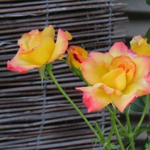 ①今日午前中に訪ねた隣県のお宅の庭の薔薇です。②夕方訪ねたお茶のみ友達の隣のお宅に咲いているアルストロメリアです。