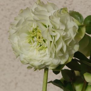 吉田さんの(省略)フレッシュグリーンがもこもこになってきました。 かなり花の厚みが出て内弁も開いてきましたね。ただ咲き進みましたが、まだ花粉が吹いてません。😁 花色もグリーンというよりはホワイトになってきました。 これにピエラの花粉つけるとピエラ多弁になりそうなので、来年の交配候補になりそうです。👍