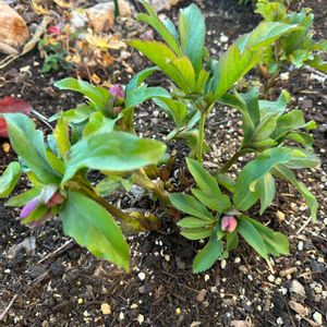 クリスマスローズ ハイブリッド🌼🌱 種まきから3年……よいよ開花の時期を迎えます。蕾の色合い確認できます。初めてなのでドキドキ(๑>ᴗ<๑)ウレシイ!!