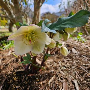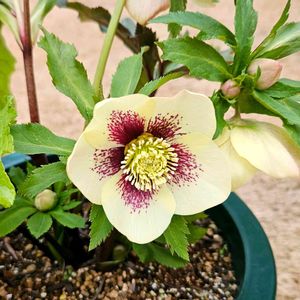 クリスマスローズ クリーム色に赤い模様が映えるクリスマスローズです✨まだ咲いていない蕾もあるので長い期間楽しめそうです☺️