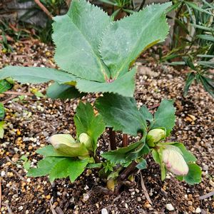 クリスマスローズ 庭の隅っこで夏越ししたクリスマスローズの蕾がもう少しで咲きそうです✨植え替えたあとにタグがどこかにいってしまって品種名がわからなくなってしまったので、お花は咲いてからのお楽しみです😅