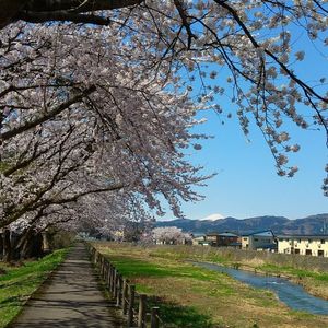 15分の散歩道 桜並木と秋田富士の鳥海山 今が満開