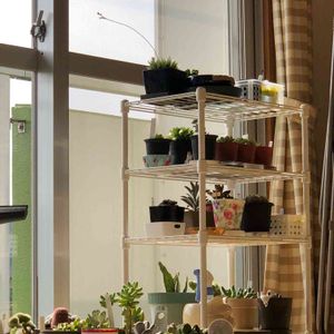朝、日が上がって来たら、こっちの部屋からそっちの部屋へ、えっちらおっちら多肉の移動🎶 みんなあったかそうでなにより😃 一番上のハオの花芽はどこまで伸びていくのか…🌹