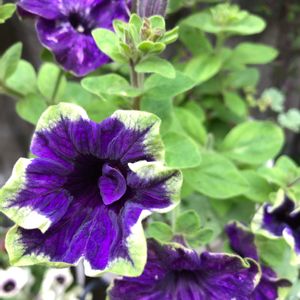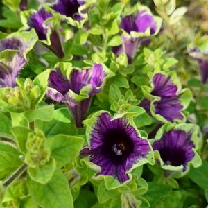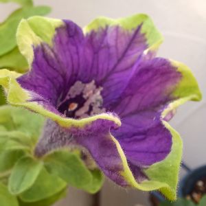ペチュニア マサキ☘️昨日ニシキシダ買いに行ってまた余計なものを買っちゃった😅でも花弁の縁が葉色と同じ色でちょっと面白いよね。