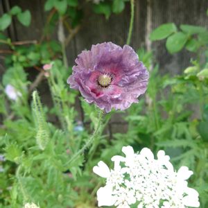 おはようございます☁️ 昨夜の風雨は先週ほどひどくはなかったですが、それでもバラとクレマチスの鉢が幾つか倒れていました💦💦 一応対策はしていたつもりなんですが😥 そんな中、ポピー「アメイジンググレイ」が咲いてくれていました💜✨ お花に雨粒が付いていないので、今朝開花したようですね✧٩(ˊᗜˋ*)و✧ 昨年9月の終わりに種を蒔き、5本発芽して順調に成長していたのに、根腐れしたのか4本が急に枯れてしまい、この1本だけ残っていたので、無事に綺麗なお花が咲いて嬉しいです(๑˃̵ᴗ˂̵)و *♪💓