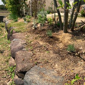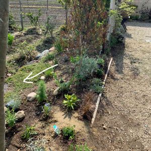 記録✍️ 南側開拓地 今日も田んぼ広がっています👨🌾笑 もともとあったドドナエアをメインに 宿根草とハーブ中心のロックガーデン風?になったらいいなーって、ただ石を置いただけになっている😂 矢印の方向に緩い斜面になっていて、一日中日が当たり風も強いので乾燥に強いものを集めました🌱あまり背が高くて繊細なものは強風で倒れるかなと、、 何か他にオススメがあれば教えてください🙇♀️ 新たに植えたもの ・ブッドレア ブルーダイヤモンド ・サルビア ネモローサ ・カレープラント ・チェリーセージ ・ラムズイヤー ・カレックス ・キャットミント ・ロータスブリムストーン ・フィソステギア ・ニゲラ ・ペンステモン ・コレオプシス ・マルバ モスカータアルバ ・トリフォリウム バニーズ 造園屋さんなった気分😂 消滅するものもあると思うので多めに植えました!今ここはオルラヤのこぼれ種が沢山芽吹いてきているので、この夏どんな感じになるか見て、また秋に配置換えしようと思います。