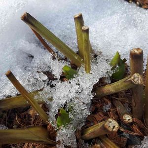 積雪をはらうと ちゃんと🎵蕾が育っています👍 北国のクリスマスローズは 先週の寒波マイナス8℃の中でも元気に春を待ってます☺ 鉢の中は凍土でカッチンカッチンなのに❗すごいなー