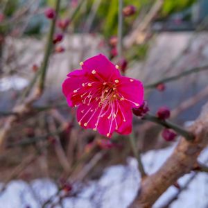 最も西側にあるウメの木が花を咲かせました。 これで全てのウメが開花したことになります。 雪が降りましたが、特に影響なく、 ウメたちは、開花を続けています。