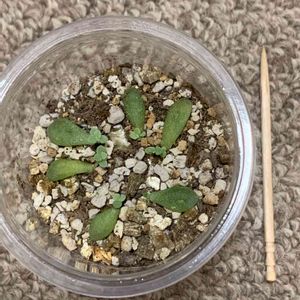 大きさ比較用の爪楊枝😅 ゴマのような葉っぱのベビちゃん達は、何年ぐらいで憧れの丼になれるんでしょうか😵 先が長いにもほどがある😂😂😂 これでも姫なんですけどね〜🤣🤣🤣 てか、フツーはこんな小さい子は育てないんですかね😅 右も左もわからずに初めて葉挿しして、初めて芽が出た子達なので、よくわかりませ〜ん😂😂😂