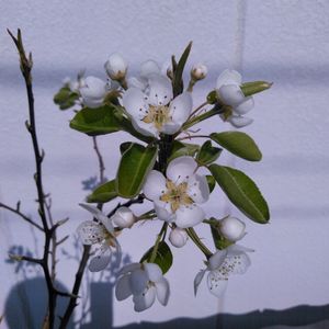 ☀本日の洋梨のお花❁ 💖カワイイ💖 3年目くらいの苗木です😌