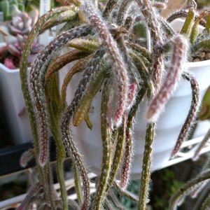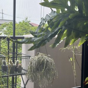 🍀リプサリス・ホリダ🍀 2年前に株分けしてお外暮らしになりました。 一つは枯らしてしまいましたが、この子はなんとか持ち直して頑張っています。🤗🎵🎶 夏の間は木の下に掛けていましたが、 冬越しは軒下の日当たりの良い所に移動しました。 🏷木曜モフモフに参加させて下さいね。