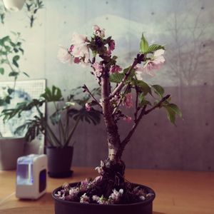 室内での桜が咲きました。 プチ花見が出来そうです。笑