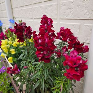 我が家のキンギョソウコーナー。 トゥイニーの後ろには背が高い銅葉キンギョソウ。 花びらがベルベットっぽい質感で色もシックでカッコいい〜💕 可愛らしいトゥイニーとスッと美しいブロンズレッド。眺めていて飽きないお気に入りの一角です。