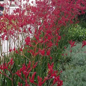 会社ビルのカンガルーポー。只今ワッサワサです。白い花も出てきた🤗。