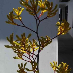 黄色いカンガルーポー。 赤いのもキレイだけど、黄色の方が名前の通りカンガルーの前脚っぽくて楽しい😊 ジムの駐車場にて撮影。