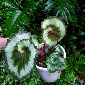 🐌🌱レックスベゴニア🌱🐌 (エスカルゴ) 葉っぱ🌱投稿が続いております🤗 天然パーマくるくる 「螺旋藺ラセンイ」さん⇒ 木枯し紋次郎こと「こがらしギボウシ」さん⇒ そして、、本日 渦巻き🌀🌀模様のベゴニア「エスカルゴ」さんです。 立体的な葉っぱでクリンと持ち上がってます。 名前通り貝の「エスカルゴ」みたいですね。 この子、あまり太陽光好きでないみたいで、 うっかりすると ショボ━(´·ω·`)━ン と葉っぱが寝てしまいます😴🌿 変わった葉っぱ楽しみたいと思います🥰 シュウカイドウ科