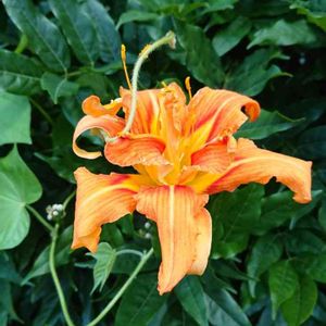 薮萱草 ✨ 赤っぽいオレンジ色と八重の花びらの具合が、ちょっと妖しげな雰囲気です…