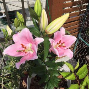 ベランダで、一つ目の百合がまず咲きました😀 これから、次々と百合の鉢の開花が楽しみになってきました。