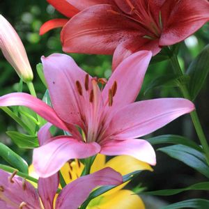 去年の秋に植えた百合が咲き始めました。 八重だと思っていたけれど… 白い百合の球根も植えたはずだけど… 色々(・・?)はありますが 可愛らしいピンクで満足しています。