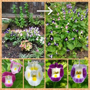 北の小さい庭から🍀 7/18 頃トレニアを3色植えました💜💗💜 8/4には、こんなに増えて、全然違う場所に(四方八方)咲いてます…(•͈ᴗ•͈)ꕤ 3色が4色に🤍💜💗💜 去年はすぐ枯れたのにな…🤔