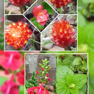 🏷𓈒𓏸︎︎︎︎真っ赤な火曜日 真ん中のベゴニアは、挿し木から咲きました😆 千日紅とサルビアはこぼれ種から😊 サルビアの蕾がクルクル、この形が伸びてサルビアの姿になるなんて❣️😍