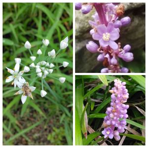 家の草むらから🤍💜 (´•ᴗ• ก )՞ ՞ ヤブランが沢山の蕾をつけだしましたね。 アップで撮ったのは初めて🥰💜💠カワイイ🎶 ニラの花も蕾が沢山🤗 これからの🐕🦺🚶♀️が楽しみです🤍🐝?!