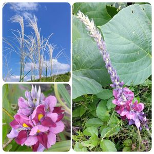 今朝の🐕🦺🚶♀️散歩👟👟 葛の花が綺麗でした。香りも好き🤗💕 青空にススキが映えますね✨