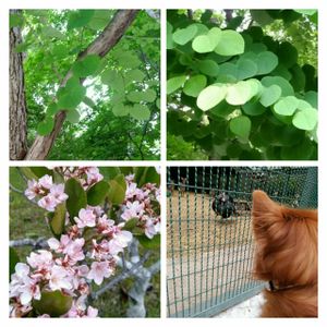 今日は少し遠くへ🐶と、ドライブ🚘 小動物がいる公園ヘ行きました😆 七面鳥にびっくりの🐶😆 葉っぱが可愛い、木に出会えました💚 ネームプレートが掛けてあり【かつら】と、知りました。新緑も綺麗💚