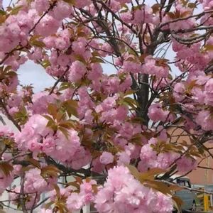買い物の道中、可愛い八重桜が🌸🌸🌸🌸🌸 トキワマンサクも色鮮やかです💓💜