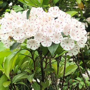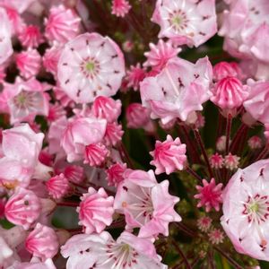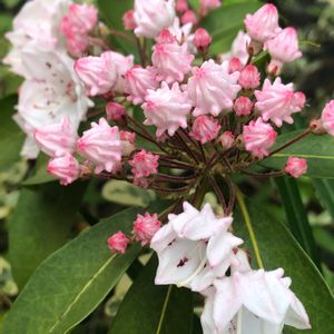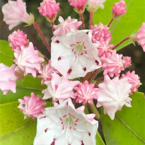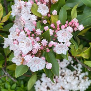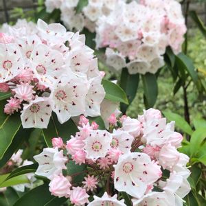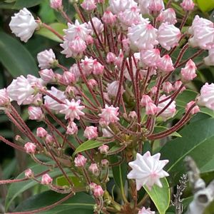 五角形の壺形の可愛らしい花を咲かせる「カルミア」で、おはようございます🌟🤍🕊️✨ 陽射しの強い日に、パッと涼しげな日傘を開いたように咲く花姿が素敵でした☺️🌂☀️ "カルミア"は北アメリカ原産のツツジ科の常緑低木🇺🇸 春から初夏にかけて、白やピンク、赤紫色などの特徴的な花を咲かせます🤍🩷💜✨ 「カルミア (=Kalmia)」という独特な花名は、18世紀に北アメリカを探検しながら植物研究に従事したスウェーデンの植物学者・ペール・カルム (Pehr Kalm) 氏の名に因んでつけられたのだと、この度分かりました🇸🇪🔍🌱 ー別名は、「アメリカシャクナゲ」、「ハナガサシャクナゲ」、「マウンテンローレル」他多数。 ー花言葉は、「爽やかな友情」、「自制心」…他。