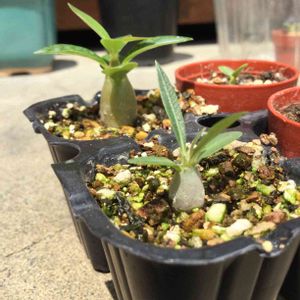 6/23播種のP.ホロンベンセ(手前)とアデニウム・オベスム(左)。 (7/19投稿写真の子たちです👍) 右と上は7/27播種のP.エブレネウム 先輩組植替えしてから太ってくれて嬉しい!夏のうちにどんどん肥えてくれ〜〜