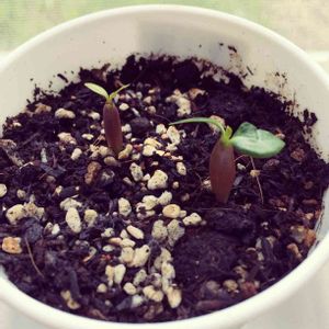 種撒きから5日以内で9/10が発芽したんだけど、残りの一粒は10日経っても発芽しなくて諦めてた。半分忘れかけてたんだけど、気付いたらなんかいた(°_°) でも双葉がないしどうも様子がおかしい…