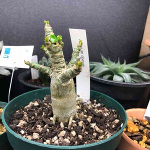 1番育ってる鉢のアデニウム 葉っぱがどんどん出て来てて満足なんだけど、育ってないのはいつまでもモヤシ…葉っぱも2枚とか なんでこうも成長に差がつくのか…